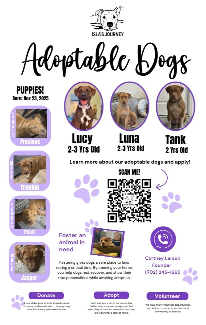 Every dog who enters Isla’s Journey Rescue and Helping Paws comes with a past that didn’t give them a fair chance. Rescue gives them safety, but training gives them the ability to truly heal. Your support makes that full circle possible.
